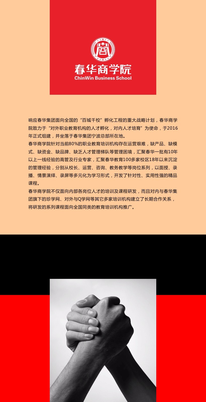 由商学院牵头10位有10年以上一线经验的高管及行业专家,汇聚100+家校区18年以来沉淀的管理经验,分别从校长系列、运营系列、咨询系列、教务教学系列,以面授、录播、情景演绎、录屏等多元化为学习形式,共计开发了60多门时下实用性强的精品课程。并且将研发的系列课程面向全国同类的教育培训机构推广。